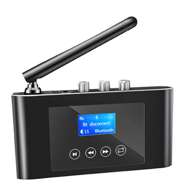 Аудио адаптер NFC T38 Bluetooth 5.1 применяется для приема и передачи аудио сигнала на расстоянии 15 м. Компактный блютуз приемник для аудиосистемы, проекторов, телевизоров, компьютеров также может использоваться в мультимедийной системе автомобиля для расширения ее функционала. Беспроводной аудио адаптер оснащен светодиодным дисплеем с подсветкой, на котором видны проигрываемые треки, выставляемые настройки. Адаптер оснащен модулем NFC, благодаря которому процесс соединения с телефоном ускоряется. Блютуз аудио ресивер также можно подключать проводным способом – для этого в наборе есть USB кабель, провода-тюльпаны, предусмотрены коаксиальные и оптические входы. Bluetooth аудио модуль работает от встроенного аккумулятора.